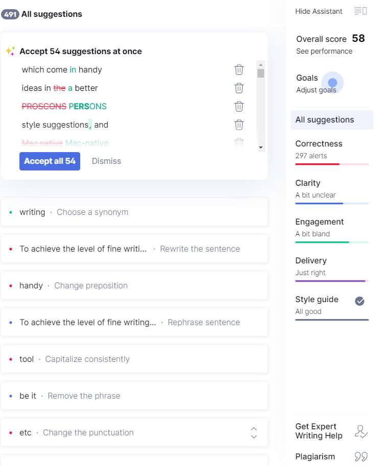 ProWrigingAid est une bonne alternative à la grammaire. Pour plus d'informations, n'oubliez pas de consulter mon avis sur ProWritingAid.