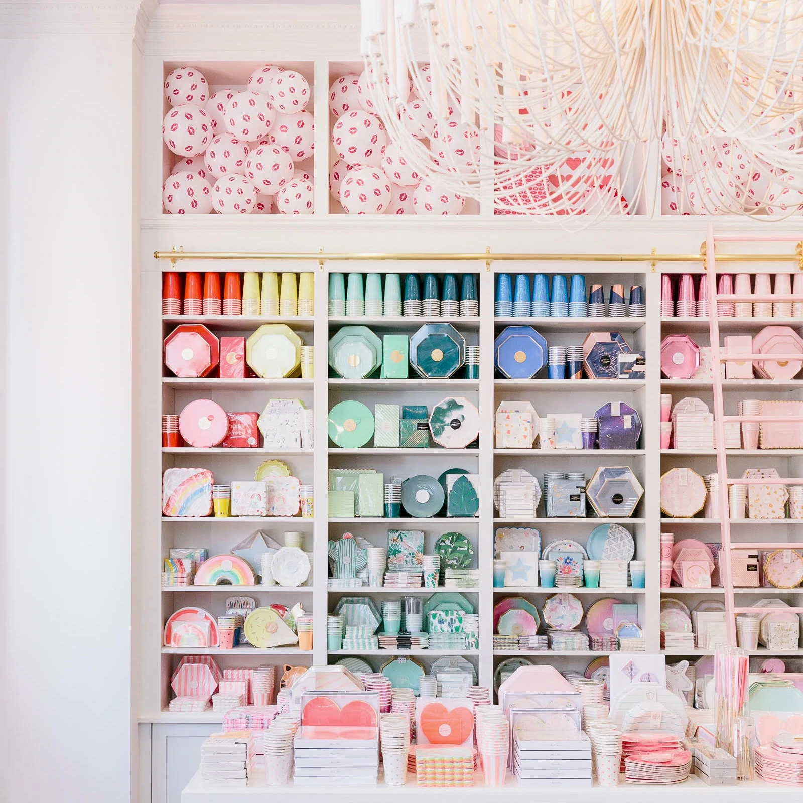 Rachel Huntington : C'est vraiment venu au premier plan de ce que je voulais faire parce que je vivais au Canada à l'époque, et si vous avez déjà passé beaucoup de temps au Canada, le nombre de magasins de niche n'est pas aussi abondant que ils sont aux États-Unis. Quand est venu le temps de l'anniversaire de ma petite fille, je suis allé dans un magasin local qui vendait des articles de fête, et tout était assorti, comme des tasses de princesse assorties, des assiettes de princesse assorties. C'était la même image sur 25 choses. Alors j'ai juste pensé que nous pouvions être un peu plus originaux que ça, et j'ai vraiment commencé à chercher et j'ai trouvé tout cet autre monde d'articles de fête qui existait et que je ne pouvais tout simplement pas trouver.