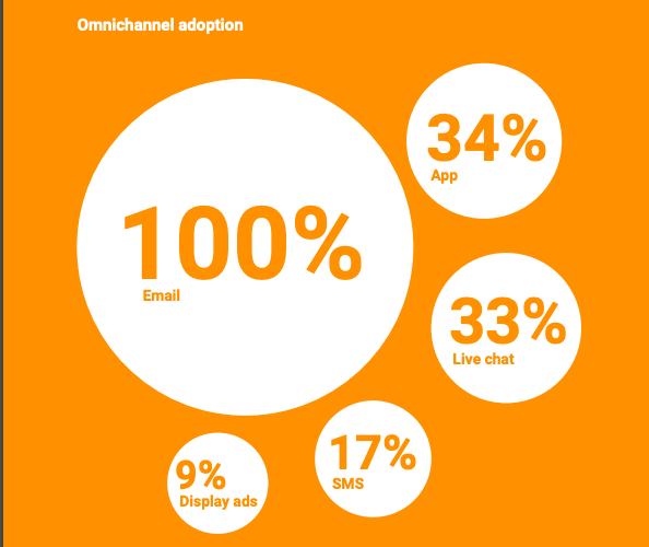 Selon le rapport, seulement 18% des marques ont adopté des tactiques de marketing omnicanal. De la même manière que l'idée d'avoir des centres de préférence sur un e-mail, il est important aujourd'hui d'atteindre vos clients au-delà d'un seul canal.