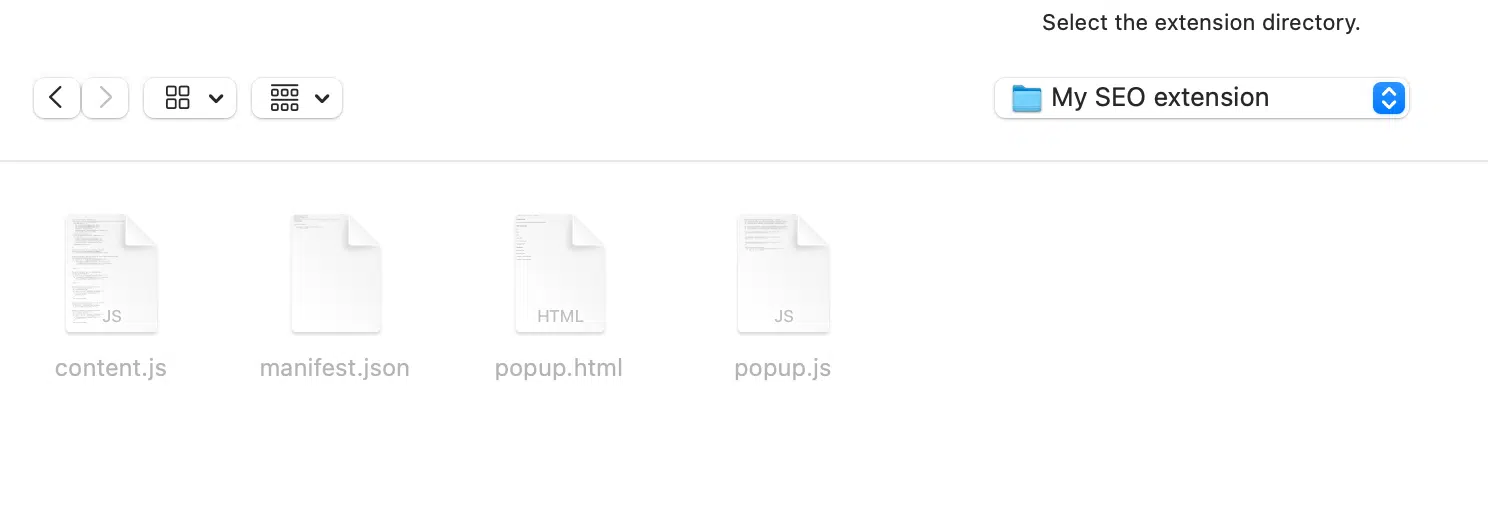 Lorsque vous appuyez sur "Load Unpacked", cette fenêtre s'ouvrira si vous êtes sur un Mac.