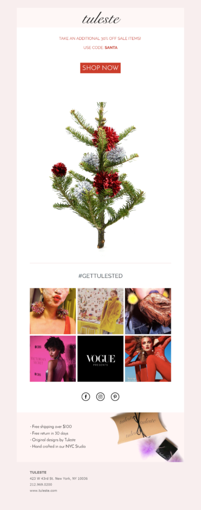 - Créez une campagne d'e-mails qui rend le concept immédiatement visible, quelque chose qui ressemble à « dernier appel, avec une remise supplémentaire et une livraison garantie avant le réveillon de Noël ».