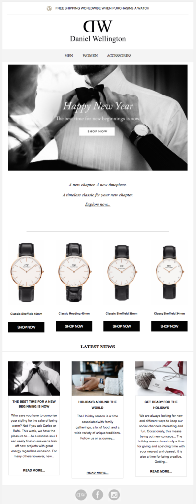 Focus sur les émotions : Le Nouvel An est toujours l'occasion de recommencer , de montrer une nouvelle version de soi. Daniel Wellington le comprend très bien, comme le montrent leurs e-mails :