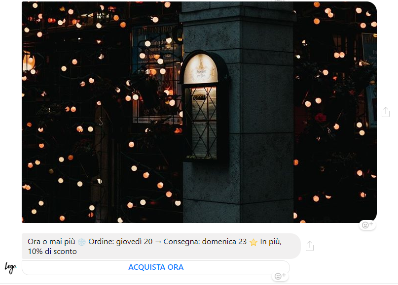 - Créez un message automatique pour les applications de messagerie, en définissant des textes, des images et un appel à l'action. Voici un exemple de message de bienvenue que vous pourriez envoyer