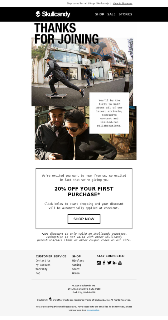 - Créez la campagne email en vous assurant que la remise est bien visible (encore mieux si vous n'avez pas besoin de scroller). Voici un exemple concret d'un accueil efficace avec remise incorporée.