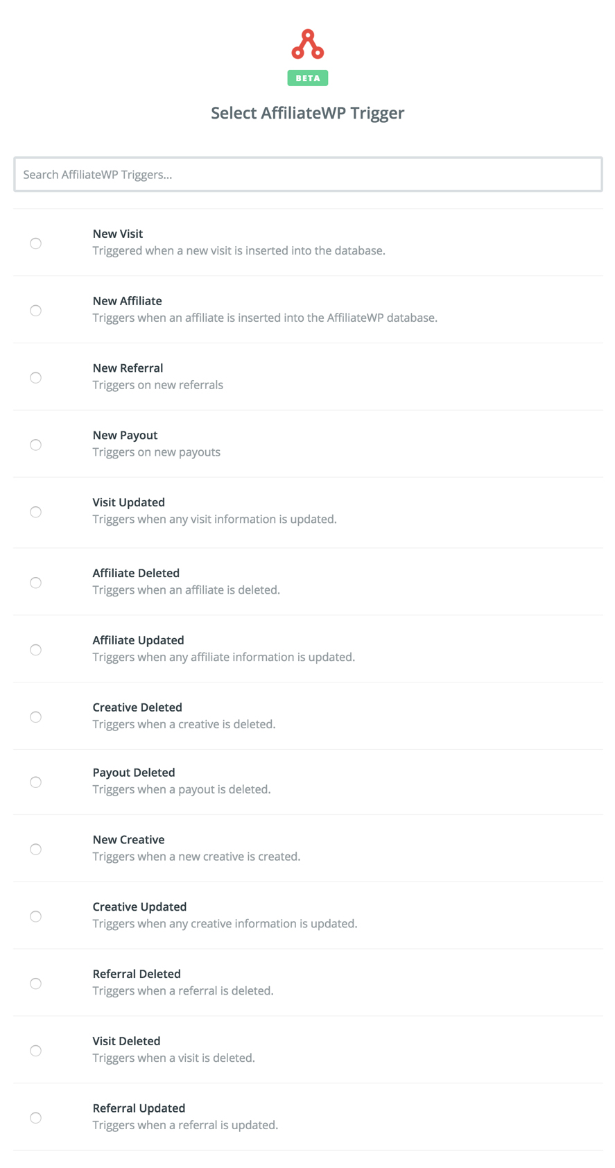 En effet, s'il existe une application proposée dans Zapier que vous avez toujours voulu connecter à AffiliateWP, vous le pouvez maintenant.