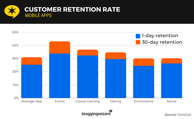 - Les applications de bandes dessinées ont la plus grande rétention sur 1 jour à 33,8 %