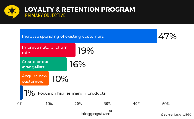 - 47 % des professionnels interrogés ont déclaré que l'objectif principal de leur programme de fidélisation de la clientèle était d'augmenter les dépenses des clients