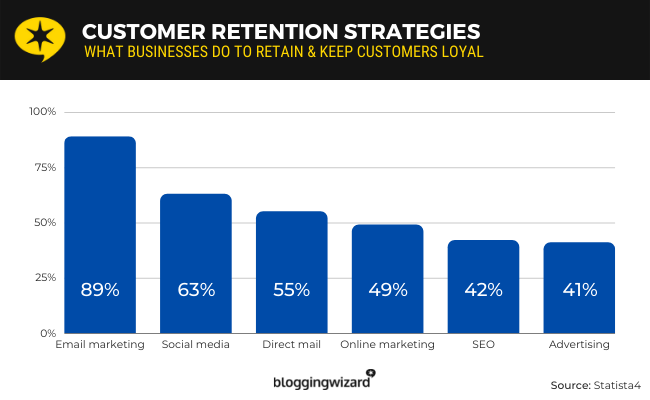 - Le courrier électronique est le canal de fidélisation client le plus populaire. Il est utilisé par 89 % des spécialistes du marketing. (Statistique 4 )