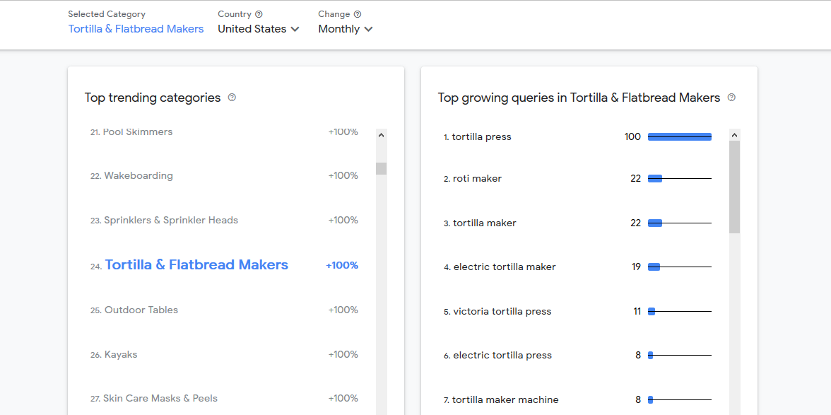 Si vous avez plusieurs gammes de produits et que certains des produits que vous vendez incluent l'un des produits de la liste, par exemple Tortilla et Flatbread Makers, vous devez alors concentrer tous vos efforts marketing (et votre budget) pour promouvoir ces produits.