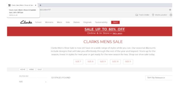 En décomposant cela en divers éléments, nous pouvons voir un modificateur ajouté et cliquer sur l'aimant « 60 % de réduction sur la vente », ainsi que le mot-clé cible « chaussures et sandales pour hommes » dans la balise de titre.