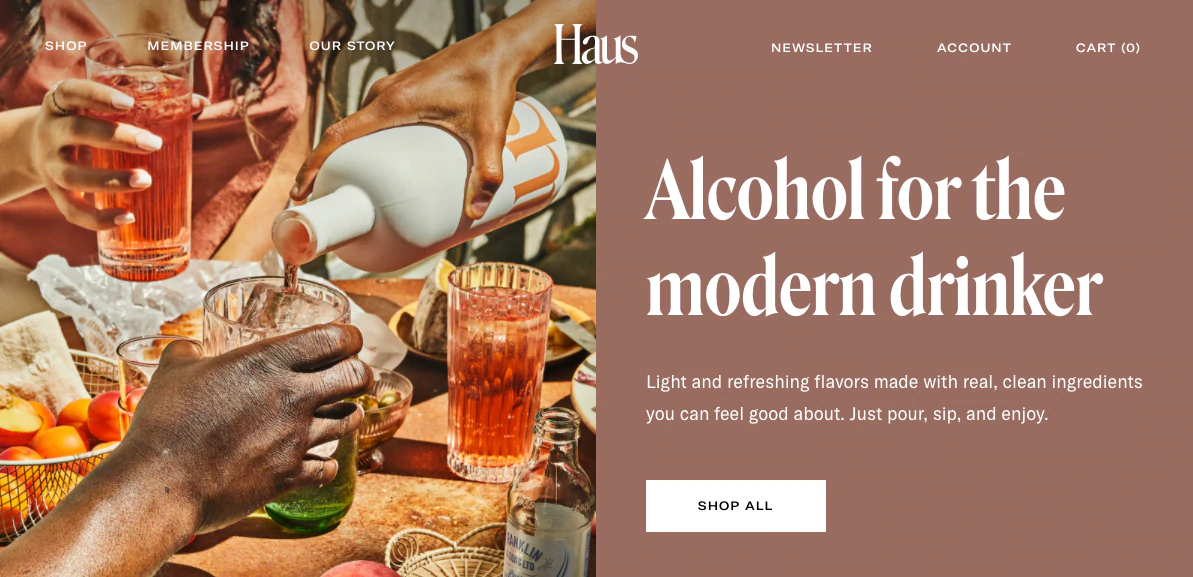Haus est une marque californienne spécialisée dans les apéritifs, des boissons alcoolisées riches en saveurs, à faible teneur en alcool et destinées à être servies avant un repas.