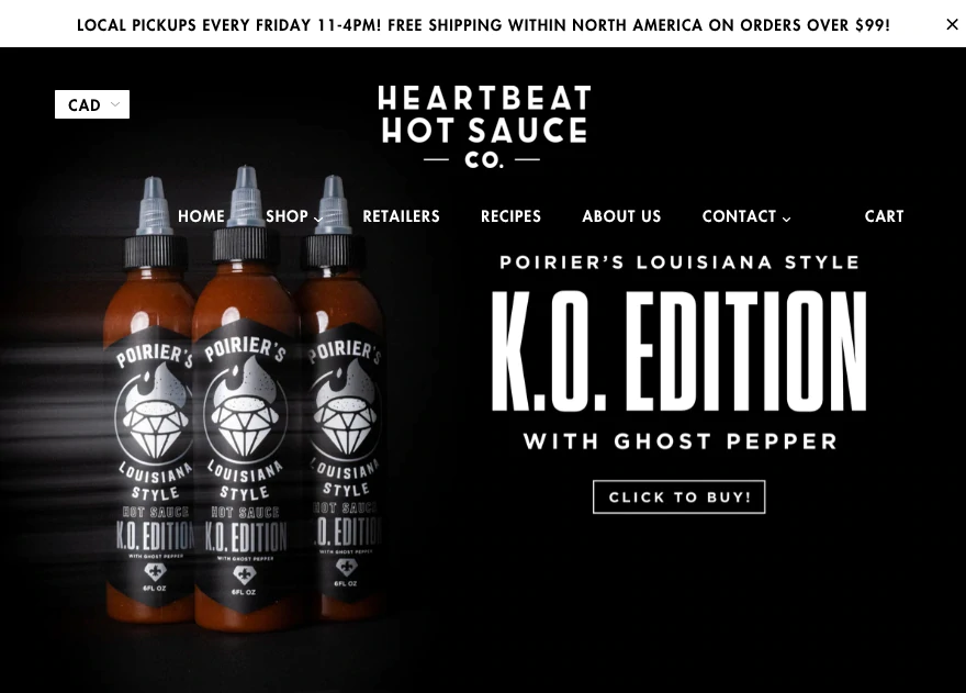 Basée à Thunder Bay, en Ontario, Heartbeat Hot Sauce développe, cuisine, embouteille et distribue sa propre gamme de sauces piquantes. Heartbeat Hot Sauce propose des produits de base comme le piri piri et la sauce piquante de style Louisiane, ainsi que des combinaisons de saveurs plus uniques comme l'ananas et le habanero aux myrtilles.