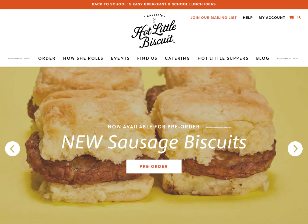 Callie's Hot Little Biscuit est un restaurant à emporter avec des emplacements à Charleston, Atlanta, Charlotte et un food truck qui se déplace dans tout le sud des États-Unis. Grâce à sa présence sur les réseaux sociaux , il s'est constitué une suite de fans en ligne dévoués.