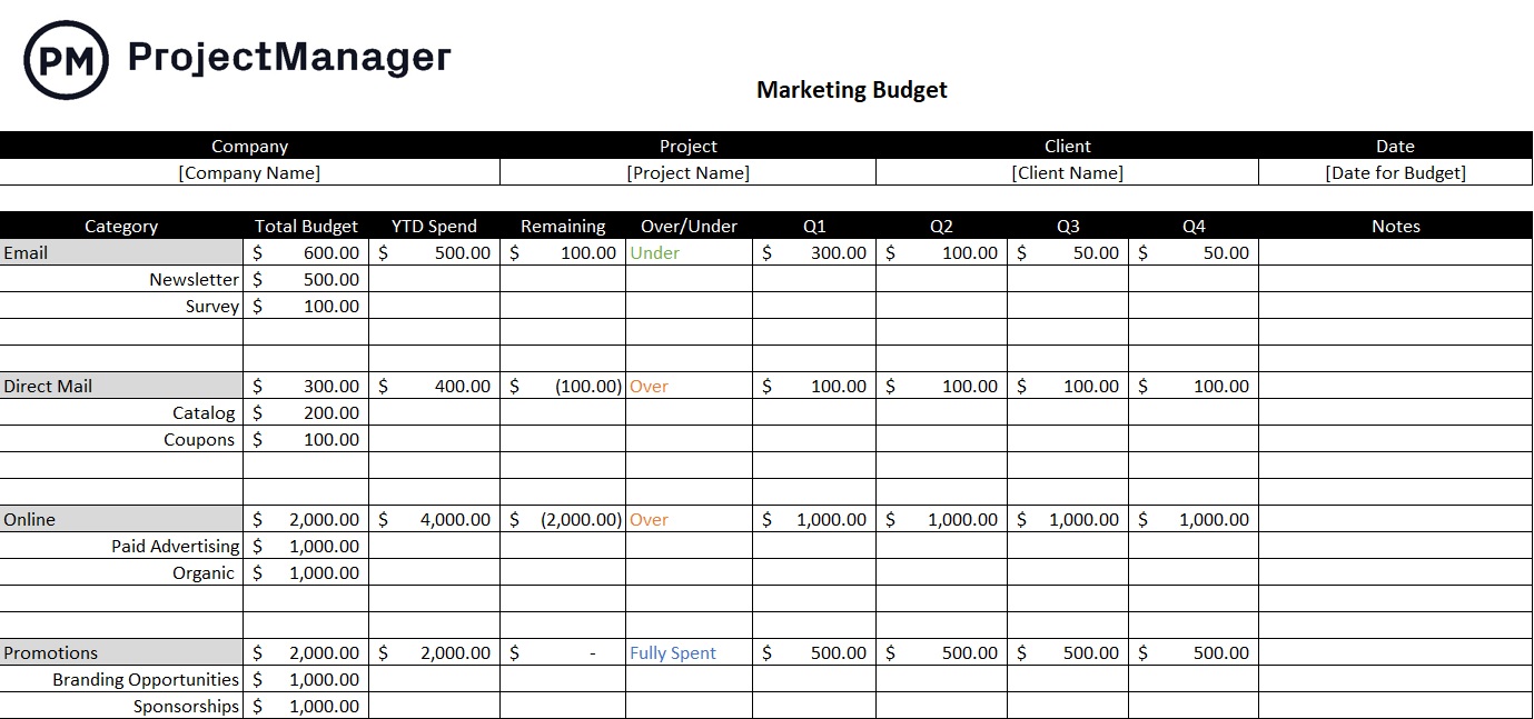 L'utilisation d'un modèle de budget marketing va de pair avec le plan marketing, car il fait partie intégrante du plan marketing plus large. Il vous aide à prévoir ce que vous devez dépenser pour mener à bien une campagne marketing réussie.