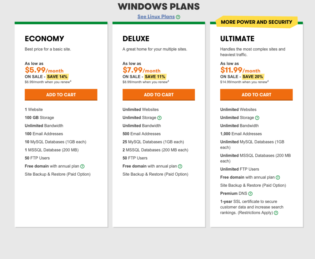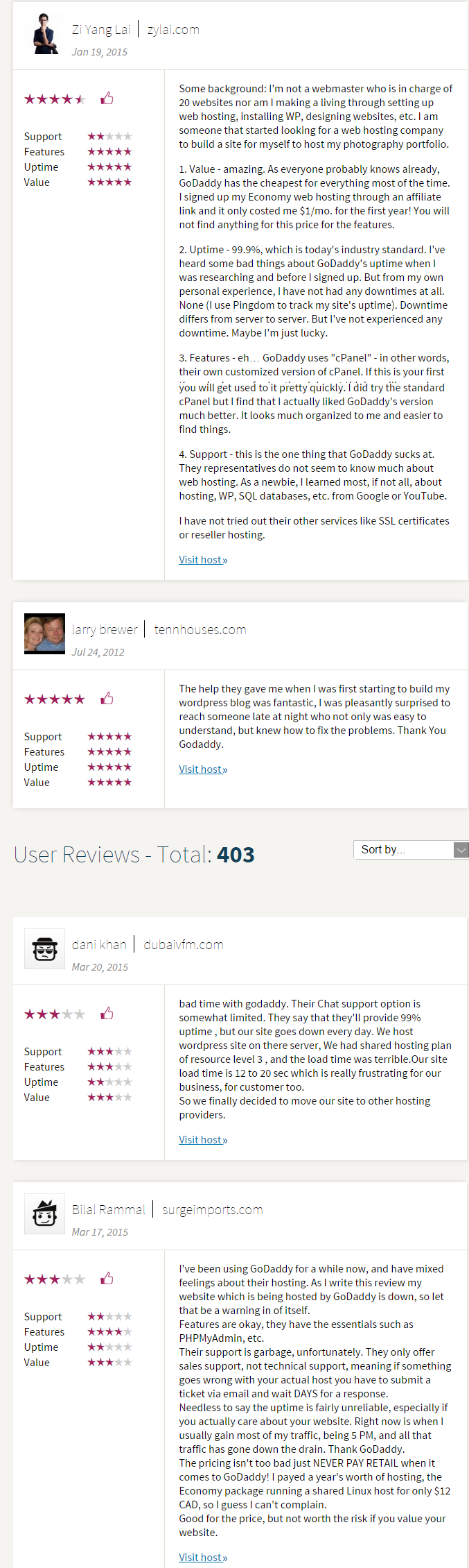 Ces options fonctionnent rapidement et permettent une résolution rapide de tous vos problèmes. Je les ai contactés une fois par téléphone car mon site Web ne se chargeait pas et je ne savais pas quoi faire. Ils ont été assez rapides pour résoudre le problème en 10 à 15 minutes maximum. En ce qui concerne l'opinion publique, GoDaddy aurait le meilleur service client parmi tous les principaux fournisseurs d'hébergement Web.