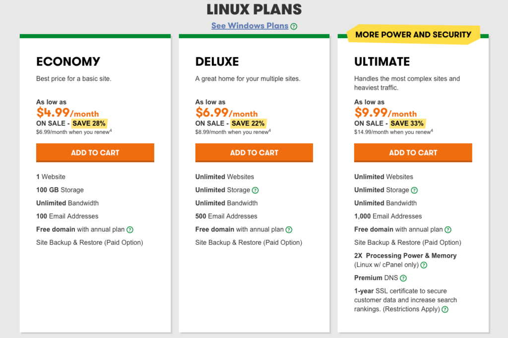 - Hébergez des sites Web illimités (sauf le plan Economy)