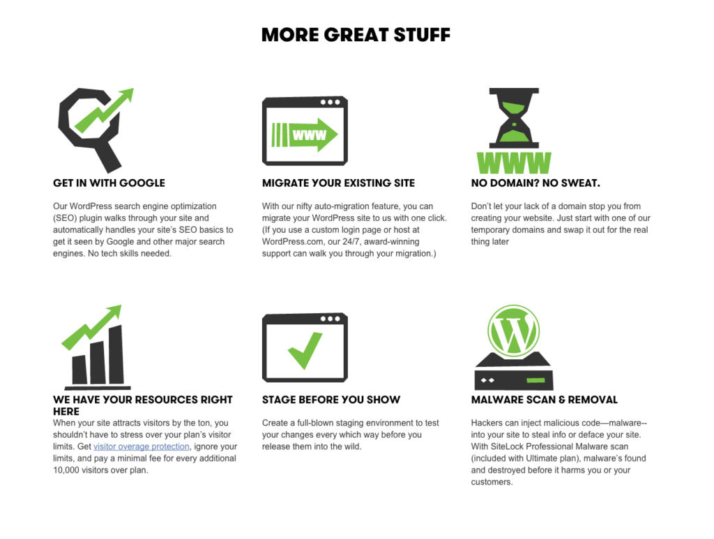 Fonctionnalités des plans d'hébergement WordPress de Godaddy