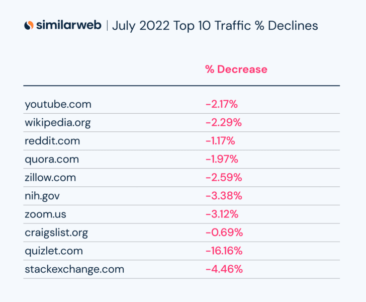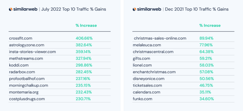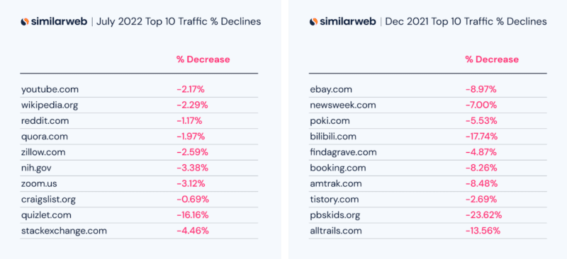 Voici quelques gagnants et perdants parmi les données de Similarweb :
