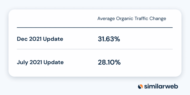Maintenant que RankRanger a Similarweb, ils peuvent désormais également comparer le trafic de la recherche Google pour comparer à ce niveau. Et cela a également montré que la mise à jour de décembre était plus importante que la mise à jour de juillet :
