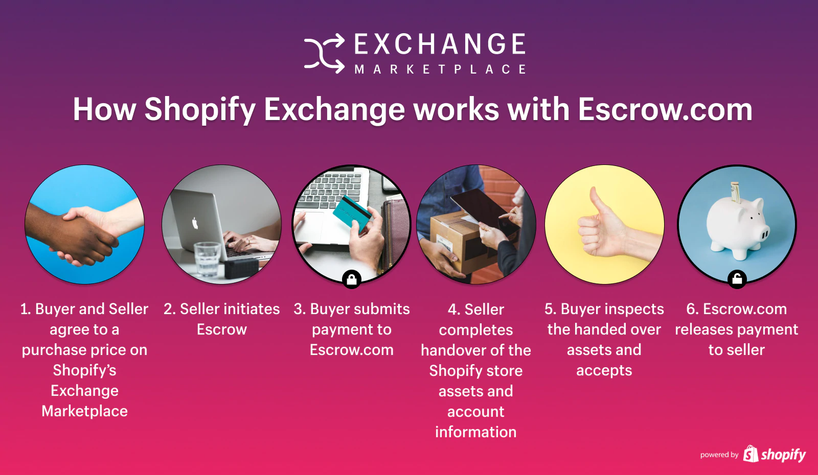 Le marché Shopify Exchange s'est associé à Escrow.com pour garantir un échange de magasin sûr et digne de confiance.