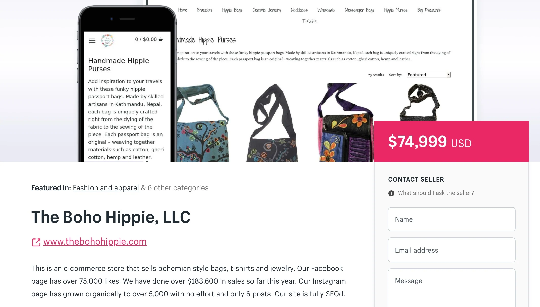 Chaque annonce contient une description de ce que vous obtenez avec le magasin, ainsi que le trafic et les revenus de l'année écoulée et un prix demandé. Lorsque vous achetez des sites Shopify, vous pouvez négocier avec le vendeur en lui envoyant un message via le formulaire de contact. De nombreux vendeurs indiqueront également la raison pour laquelle ils vendent le magasin, qui est souvent due à un manque de temps ou à un événement qui change la vie.