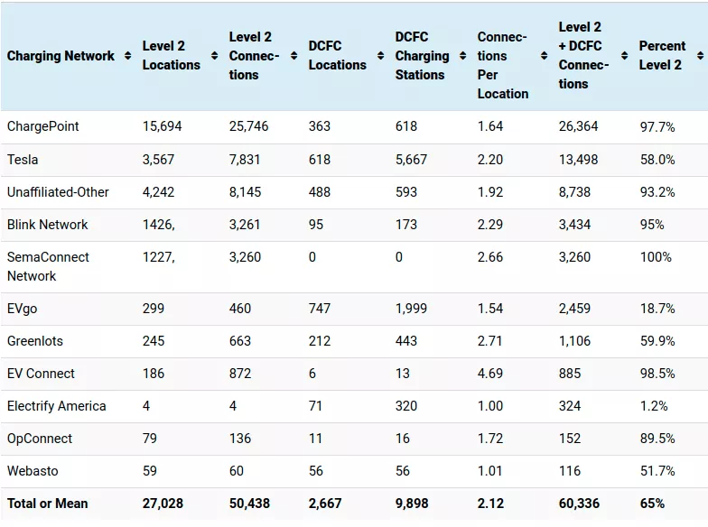 Principaux réseaux de recharge de véhicules électriques aux États-Unis selon le centre de données sur les carburants alternatifs (31 mars 2019)