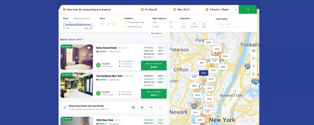 La forme la plus populaire d'application de réservation d'hôtel et il y a une bonne raison derrière cela. Les applications de réservation d'hôtel fonctionnant sur ce modèle ont tendance à être en relation avec une variété de services de réservation en ligne. Ce que cela fait, c'est que chaque fois qu'un utilisateur commence à faire défiler une application de réservation d'hôtel pour rechercher un endroit confortable où séjourner, il reçoit une grande liste d'hôtels ayant des fourchettes de prix flexibles. Une fois que l'utilisateur a trouvé l'option d'hôtel qu'il aime, il est directement redirigé vers le site Web de l'hôtel en question. Hotel Book et Booking.com viennent à l'esprit lorsque nous pensons aux applications basées sur un modèle d'agrégateur.