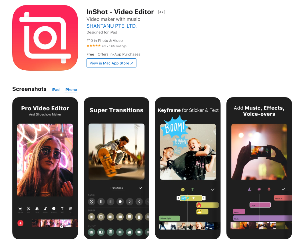 InShot est gratuit, mais vous devrez passer à la version premium pour vous débarrasser du filigrane. Il est disponible pour iOS et Android.