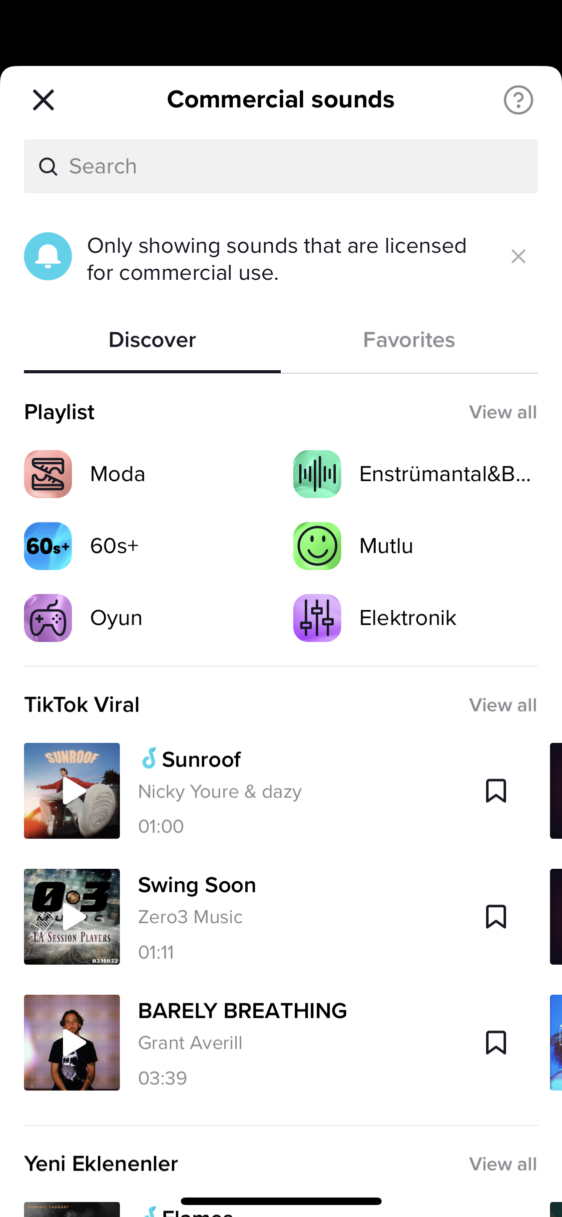 Vous pouvez trouver de la musique tendance en appuyant sur Ajouter un son en haut de votre écran d'enregistrement ou d'édition. Parcourez la bibliothèque ou recherchez des sons spécifiques à l'aide de la barre de recherche.