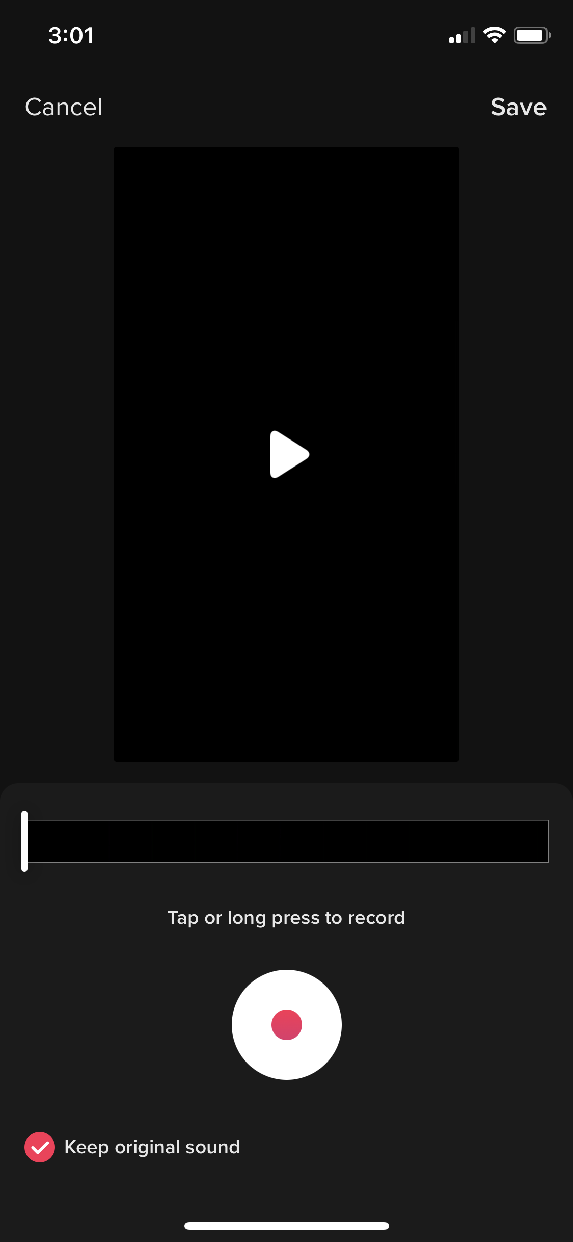 Vous voulez raconter vos vidéos ? Vous pouvez enregistrer une voix off après avoir filmé votre TikTok en utilisant le bouton Voiceover sur l'écran d'édition.