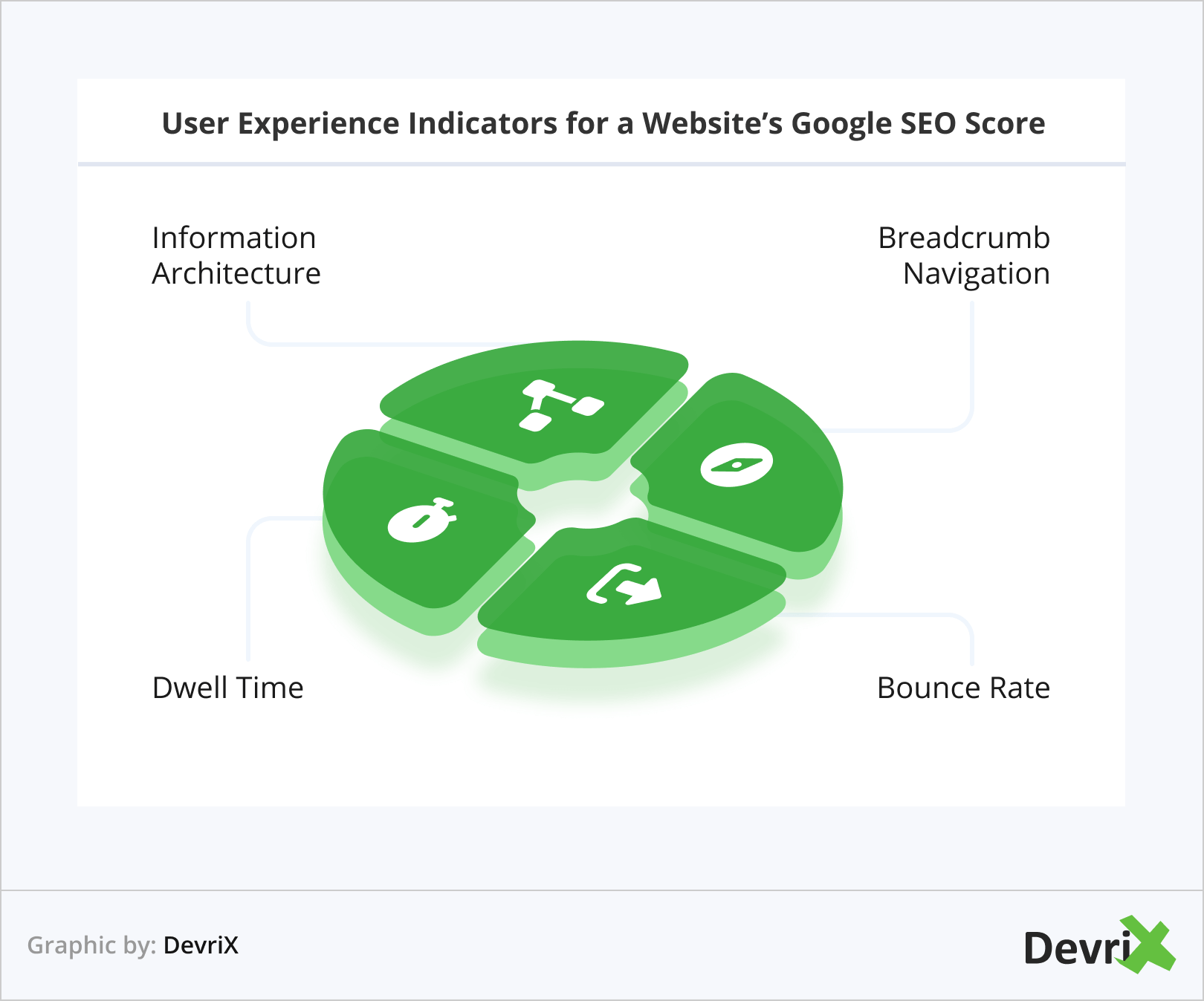 Bien que l'optimisation technique et l'optimisation du contenu contribuent grandement à l'expérience utilisateur, il y a quelques éléments à mentionner séparément. L'accent est mis ici sur la convivialité - la facilité avec laquelle l'utilisateur peut interagir avec les pages et le temps qu'il y passe .
