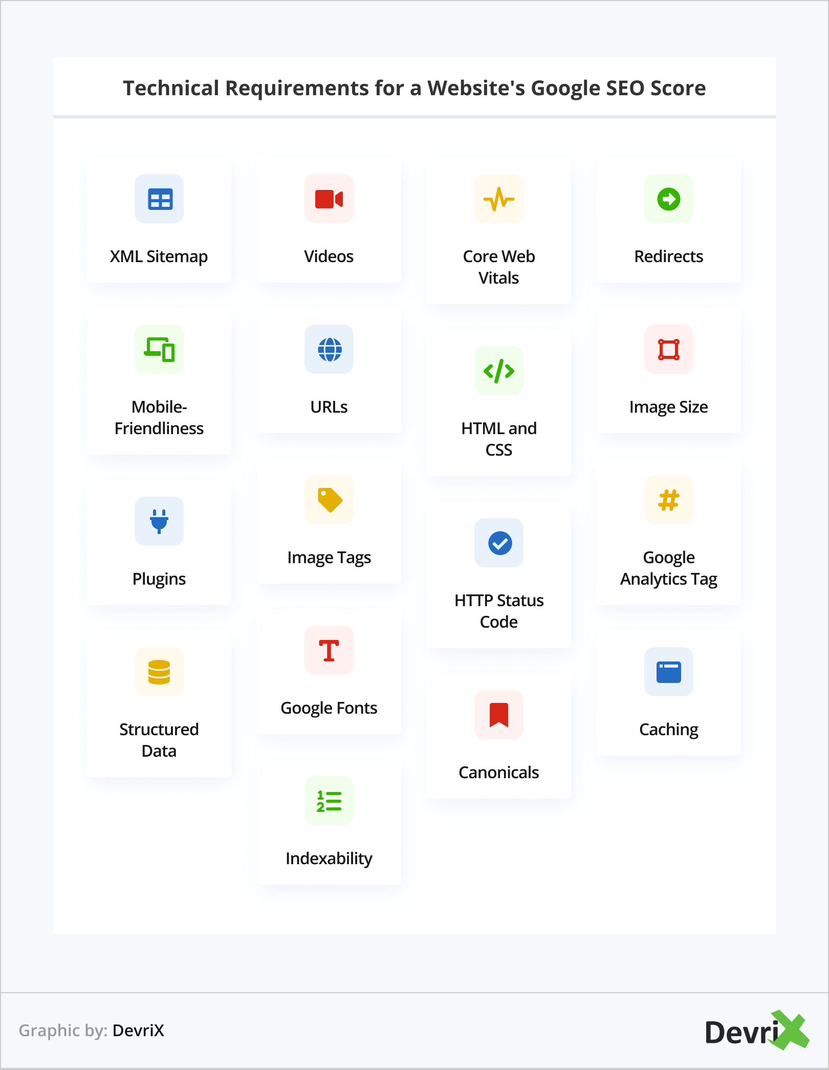 Selon l'outil, les résultats de votre score de référencement Google peuvent varier. Cependant, il existe généralement trois domaines sur lesquels vous devez vous concentrer : les exigences techniques, l'optimisation du contenu et l'expérience utilisateur.