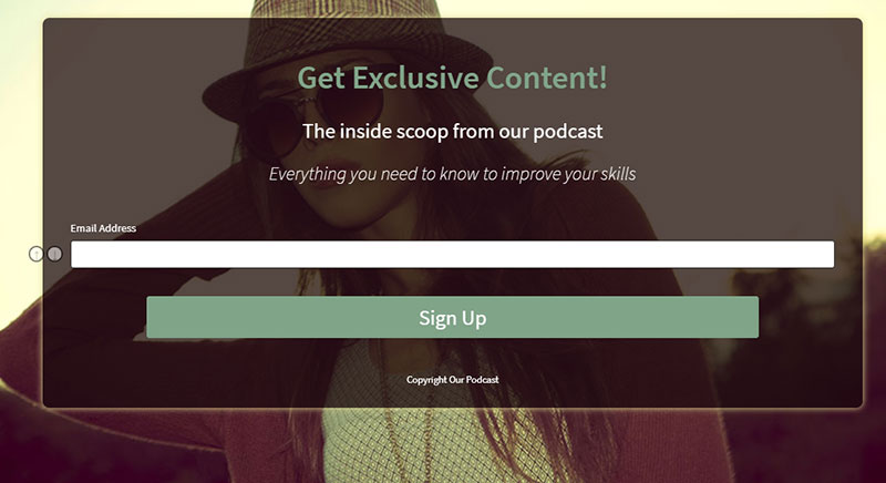Pour commencer avec le marketing par e-mail de podcast, vous devez développer une liste de diffusion. Cela devrait être facile si vous avez déjà un public. Configurez un formulaire d'abonnement opt-in sur votre site Web et faites-en la promotion lors de vos épisodes de podcast. Dites à votre public pourquoi il devrait s'abonner : contenu exclusif, informations d'initiés, trucs et astuces utiles, cadeau ou autre incitation. Vous pouvez même créer un lead magnet pour développer votre liste.
