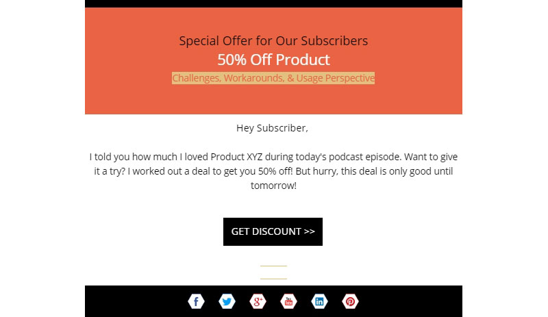 C'est aussi une bonne idée de demander aux annonceurs d'offrir une remise à votre public. De cette façon, vous êtes toujours en mesure d'offrir de la valeur grâce à la publicité payante.