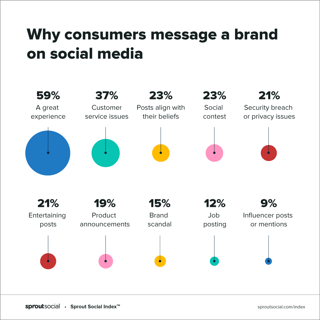 Comme nous l'avons constaté dans le Sprout Social Index Edition XVI : Above & Beyond, les deux principales raisons pour lesquelles les consommateurs envoient un message à une marque sont soit une excellente expérience (59 %) soit des problèmes de service client (37 %). Cela signifie qu'une grande partie de la gestion des médias sociaux répond aux abonnés avisés, qu'ils soient satisfaits ou non. Trouver un nouveau membre de l'équipe qui connaît bien la gestion de toute situation de service à la clientèle sera un atout considérable pour votre équipe.