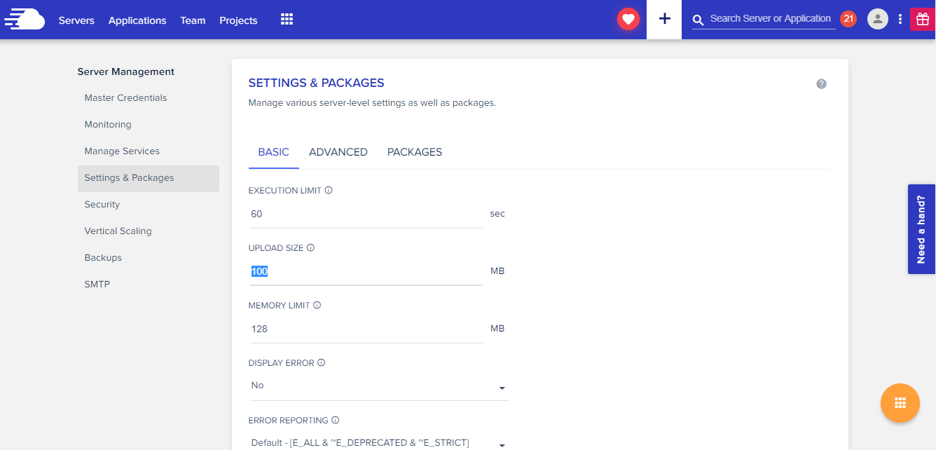 Pour modifier la limite de taille de téléchargement, connectez-vous à votre compte Cloudways, accédez à Serveur sous Paramètres du serveur et packages, modifiez le champ Taille de téléchargement comme indiqué dans la capture d'écran. N'oubliez pas de cliquer sur Enregistrer les modifications en bas de l'écran.