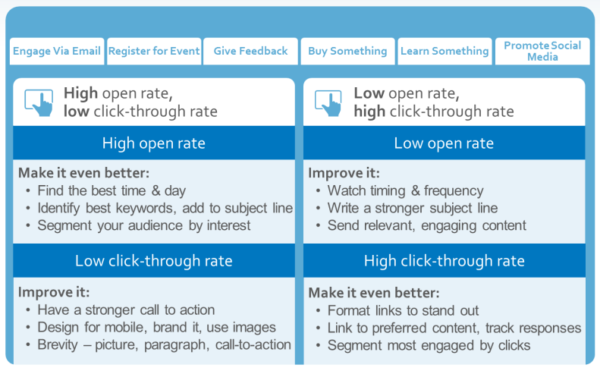 Voici un tableau pour vous aider à tirer le meilleur parti de vos données de taux d'ouverture et de clics :