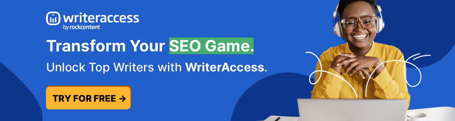 Commencez votre essai gratuit avec WriterAccess dès aujourd'hui et voyez comment nous pouvons vous aider à faire évoluer vos efforts de développement de contenu sans un investissement initial massif.