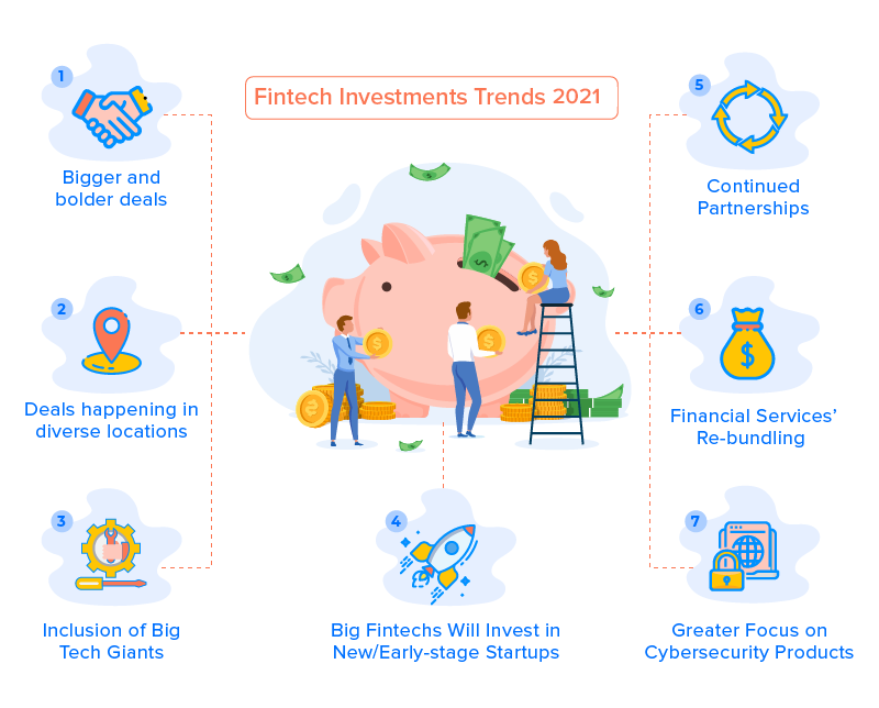 Maintenant que nous avons jeté un coup d'œil sur le paysage Fintech en 2021 et au-delà et quels facteurs contribuent à la maturation du secteur Fintech sur des bases d'investissement, laissez-nous, pour conclure, examiner les tendances d'investissement Fintech dans l'industrie Fintech qui seront actives cette année et pour un certain temps encore.