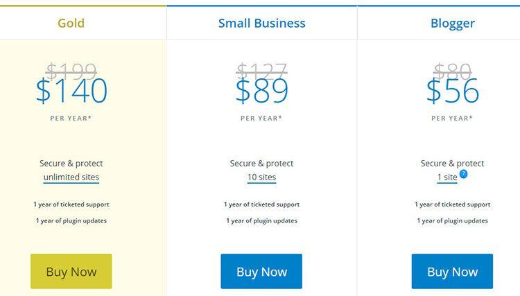 Ce plugin WordPress est disponible en trois plans tarifaires . Chaque plan comprend un an de mises à jour et de service client et 10 sites iThemes Sync.
