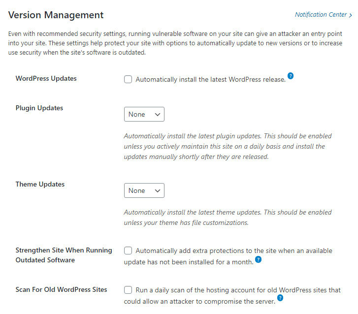 iThemes Security Pro dispose d'une fonctionnalité connue sous le nom de gestion des versions. Cette fonctionnalité trouvera et installera instantanément les nouvelles mises à jour de WordPress, des plugins et des thèmes afin que vous soyez toujours à jour avec les versions les plus récentes.