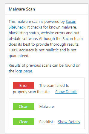 Une autre fonctionnalité intéressante est l' analyse des logiciels malveillants Sucuri Sitecheck . Sucuri Sitecheck utilise une analyse en 10 points pour rechercher sur votre site Web les logiciels malveillants, les erreurs et les plug-ins obsolètes. Vous exécutez cette analyse tous les jours sans aucune supervision de votre part.