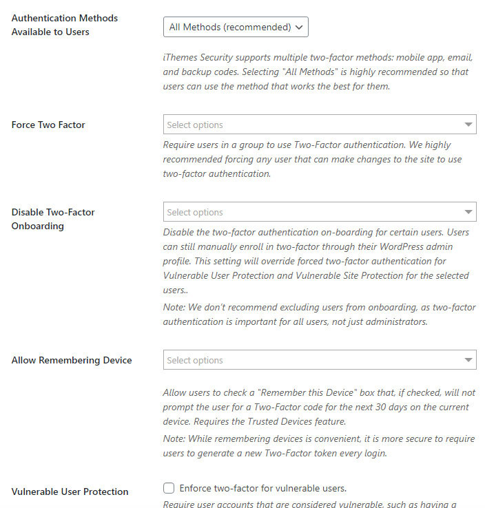 Ci-dessous, je vais expliquer certaines des options de sécurité iThemes que vous pouvez configurer.