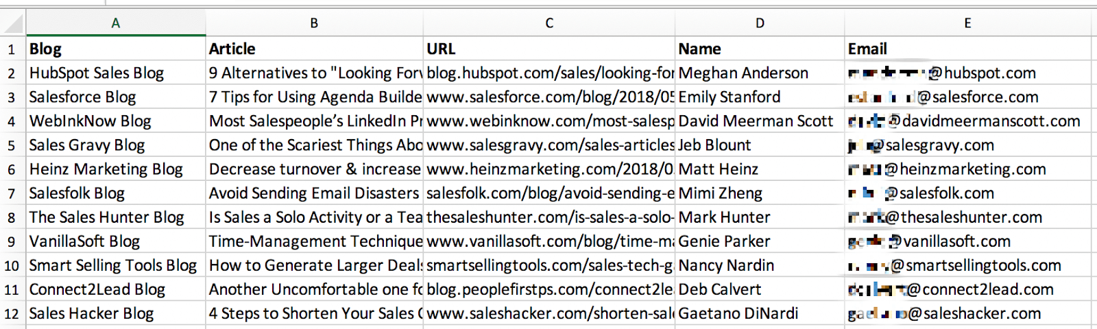 Le premier est facile; allez sur leur blog et voyez si une personne publie tout son contenu. Ensuite, vérifiez cette personne sur LinkedIn pour vous assurer qu'elle y travaille toujours et qu'elle est vraiment la bonne personne, et ajoutez-la à votre liste.