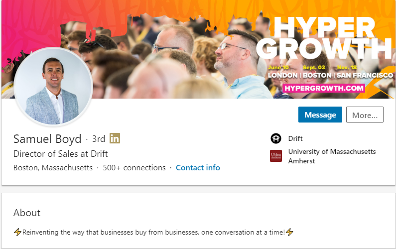 Faites-le court, direct et intrigant comme l'a fait Samuel Boyd. Son résumé ne dit pas grand-chose, mais c'est suffisant pour nous faire croire qu'il sait ce qu'il fait. C'est un exemple d'un résumé très confiant qui résonne avec des prospects potentiels.