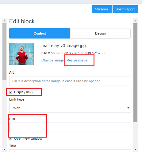 - Et ajoutez l'URL. Ainsi, lorsqu'un abonné clique sur l'image, il sera redirigé vers la page.