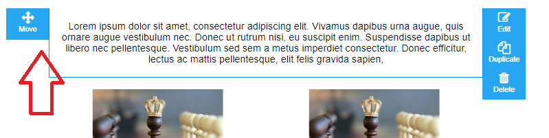 C'est aussi simple que de faire glisser l'élément en cliquant dessus et en le faisant glisser, à l'aide de l'icône « déplacer » :