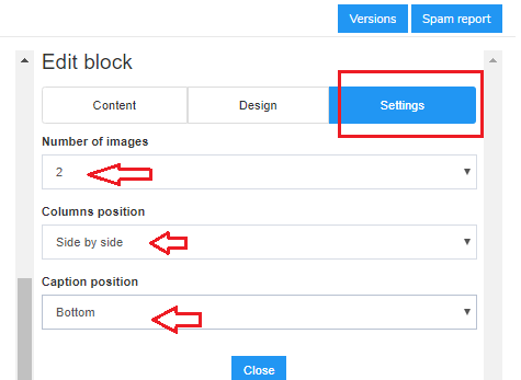 - Nombre d'images> vous pouvez choisir de créer un bloc avec une ou deux images