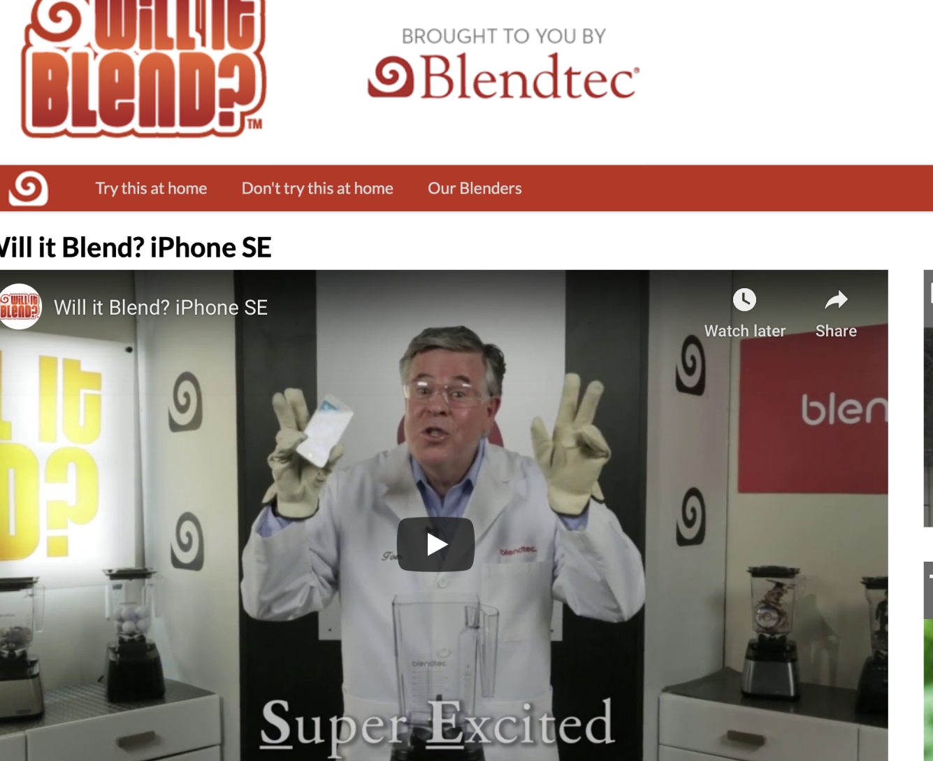 Est-ce que ça va se mélanger ? Est un exemple unique de cela. C'est une campagne marketing de BlendTec. Ils ont créé un microsite inspiré par la tendance Internet consistant à tester si plusieurs articles ménagers flotteraient, rinçaient et – oui – se mélangeaient.