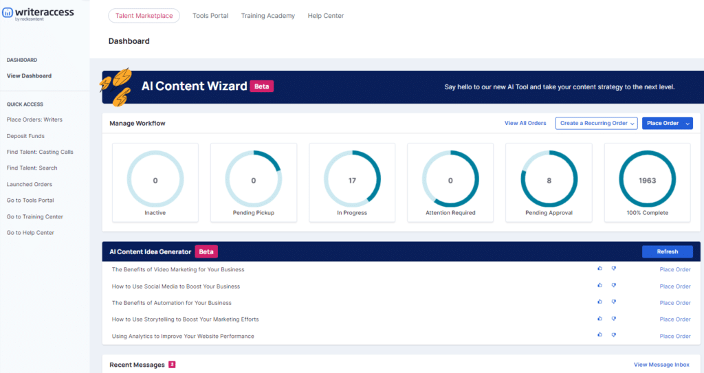 Pour vous accompagner dans cette tâche, il existe des plateformes de création de contenus comme WriterAccess. Grâce à ces plateformes, vous pouvez entrer en contact avec des rédacteurs, des relecteurs et des éditeurs indépendants talentueux qui peuvent créer du contenu à grande échelle pour votre entreprise. WriterAccess propose un essai gratuit de 14 jours, et même les petites entreprises peuvent choisir parmi des forfaits abordables qui répondent à leurs besoins.